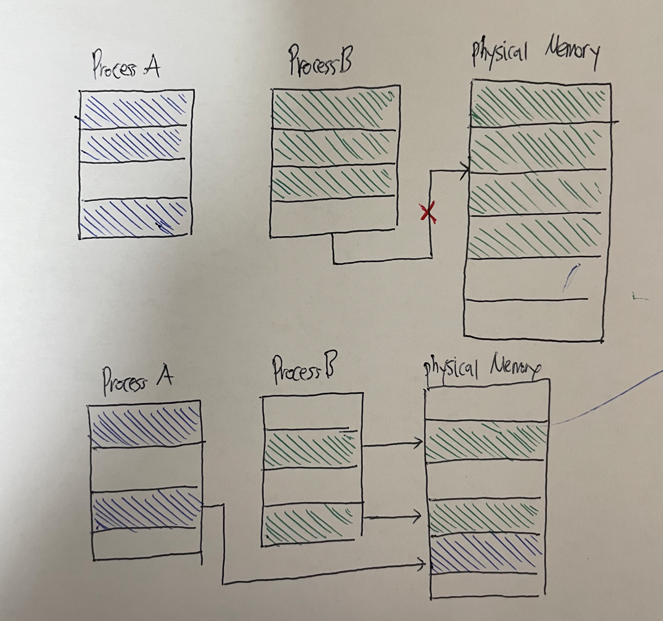 CPU가 가상 주소로 메모리에 접근을 시도하면 MMU(Memory Management Unit)가 가상주소를 물리주소로 변환해서 실제 RAM으로 매핑해주는 기법을 의미한다.